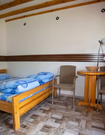 Svaka soba ima po jedan king size krevet (160x200cm) sa posteljinom, stolom, stolicama, malom garderobom i sopstvenim kupatilom sa tušem i toplom vodom. Tu je i dodatna sofa na izvlačenje (160x200cm) dovoljna da na nju mogu da stanu dvije osobe. Peškiri i toaletni pribor su obezbijeđeni. U jednu sobu mogu da stanu ukupno četiri osobe, ali iskreno idealne su za dvije do tri osobe.
